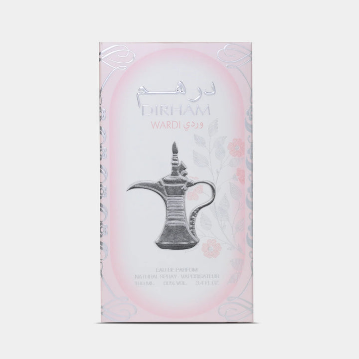 Dirham Wardi is a soft, romantic fragrance that exudes femininity and sweetness with a graceful blend of florals, fruits, and warm gourmand notes. It opens with a delicate yet vibrant mix of rose, orange blossom, pear, and blackcurrant, creating a juicy, floral-fruity introduction that feels fresh, elegant, and uplifting. The heart is rich and indulgent, combining the creamy sweetness of praline with the floral sophistication of jasmine and iris, adding a touch of powdery softness and depth. As it dries down, vanilla, patchouli, and tonka bean emerge, wrapping the fragrance in warmth and sensuality, leaving a smooth and lasting impression on the skin. Dirham Wardi is perfect for those who adore sweet, romantic scents with a modern twist.