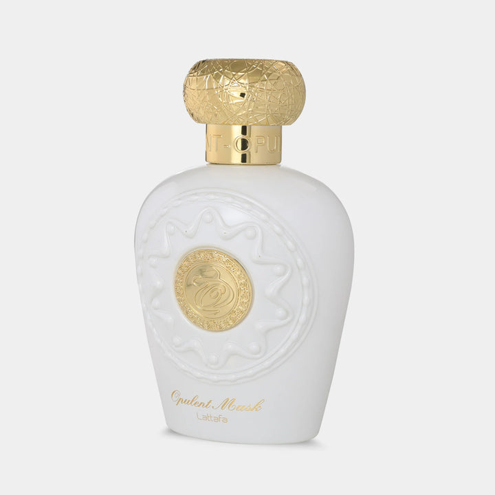 Lattafa Opulent Musk is a luminous and sensual fragrance that radiates purity, elegance, and soft sophistication. From the first spritz, it envelops you in a delicate veil of white musk, gently brightened by zesty citrus and the golden warmth of saffron. At it's heart, the fragrance blossoms into a bouquet of jasmine and white flowers, enhancing its floral softness while keeping the musky signature at center stage. The continued presence of white musk in the middle notes adds a clean, skin-like allure, creating an intimate and comforting sensation. As it settles, Opulent Musk deepens into a velvety base of sandalwood, cedarwood, and soft amber, enriched with subtle resins. These elements provide depth and longevity, while the ever present white musk ties the entire composition together in a seamless, powdery finish.