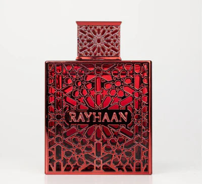 Rayhaan Crimson is a bold and intoxicating fragrance that ignites the senses with its rich, spicy elegance. It opens with a captivating blend of cardamom, cinnamon, tobacco, and pink pepper, delivering a warm and vibrant spice burst that immediately commands attention. The heart reveals a complex bouquet of geranium, sandalwood, heliotrope, jasmine, and patchouli, weaving floral softness with creamy woods and a hint of earthiness for a deeply sophisticated middle. The base settles into a luxurious and lingering finish, featuring benzoin, tolu balm, tonka bean, ambroxan, and the sumptuous sweetness of Bourbon vanilla from Madagascar. This rich foundation adds warmth, sweetness, and sensual depth.