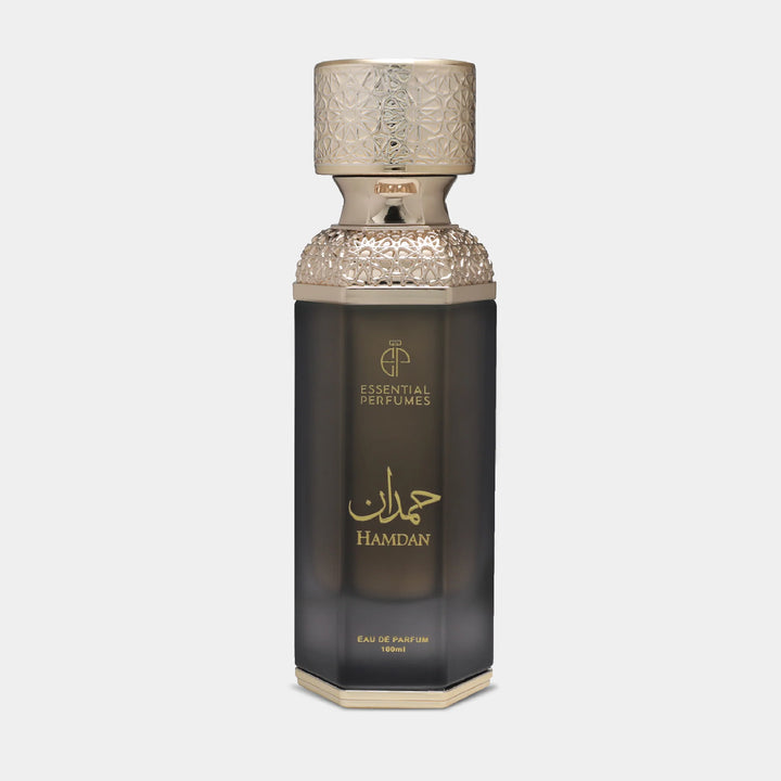 Essential Perfume Hamdan is a rich and sophisticated fragrance that masterfully blends tradition with modern elegance. It opens with a vibrant and complex mix of saffron, rose, oak moss, lavender, and citruses, creating a fresh yet deeply aromatic introduction. At its heart, a luxurious bouquet of sugar, bakhoor, jasmine, orchid, and violet unfolds, adding a sweet, floral, and slightly smoky richness that feels both exotic and refined. The base is a powerful, resonant blend of agarwood (oud), amber, patchouli, white musk, and ambroxan, providing a warm, woody, and sensual foundation that lingers with elegance and depth.